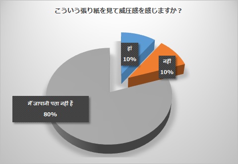 では、民族ごとに、こういった張り紙を見てどう思うか、そこらを歩いている人100人に聞いてみました。